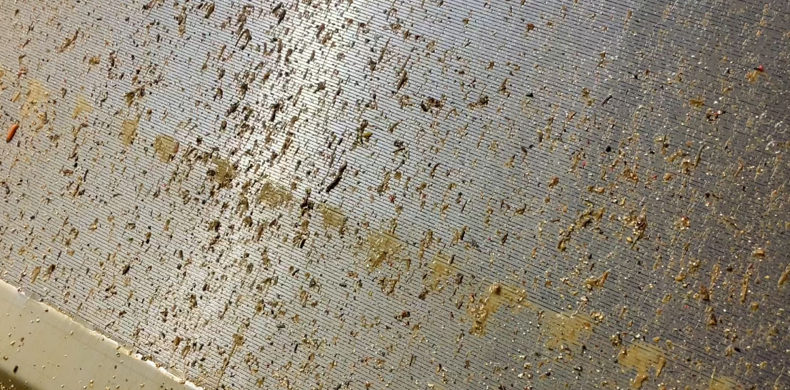 Das Hauptaugenmerk liegt darauf, mit dem ABZ-Bogensieb Störstoffe wie zum Beispiel Tannennadeln oder andere organische Stoffe aus dem Waschprozess zu filtrieren. In diesem Fall fallen zudem vermehrt Styroporkugeln und andere Störstoffe an, diese werden mithilfe des ABZ-Bogensiebes einfach aus dem Wasserkreislauf entfernt. Damit wird verhindert, dass Waschdüsen der Anlage verstopfen und sich im Sammelbecken eine unerwünschte Schwimmschicht aus genau diesen Störstoffen bildet.