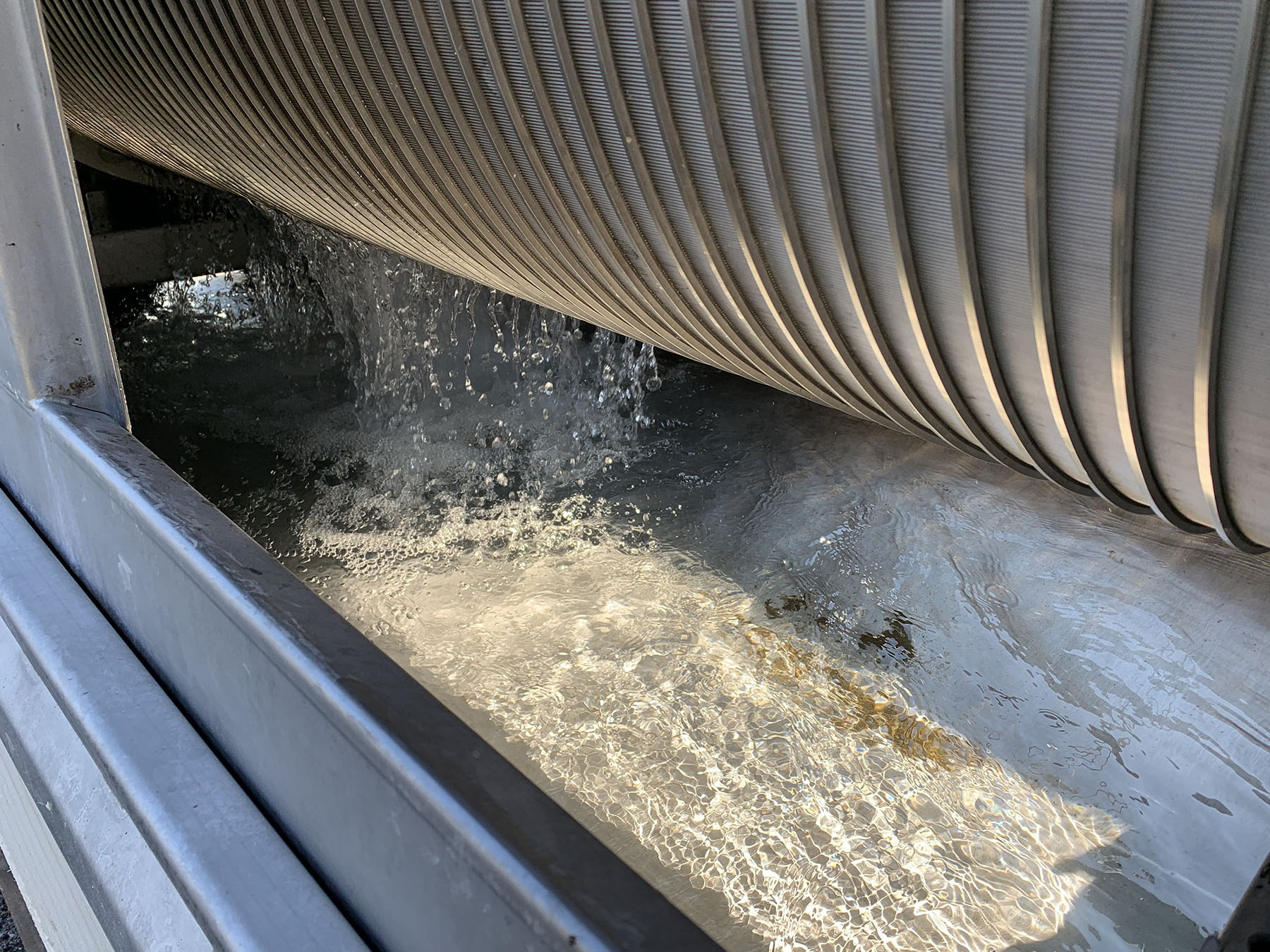 Die innen beschickte CenterFlow Siebtrommelmaschine CFS ist eine Anlage, die es ermöglicht, vielen verschiedenen Aufgabenstellungen gleichzeitig zu begegnen. In diesem speziellen Anwendungsfall wird das Rotationssieb zur Filtration des Abwassers aus einem Fischzuchtbecken von Algen, Fischexkrementen und anderen Sedimenten verwendet.