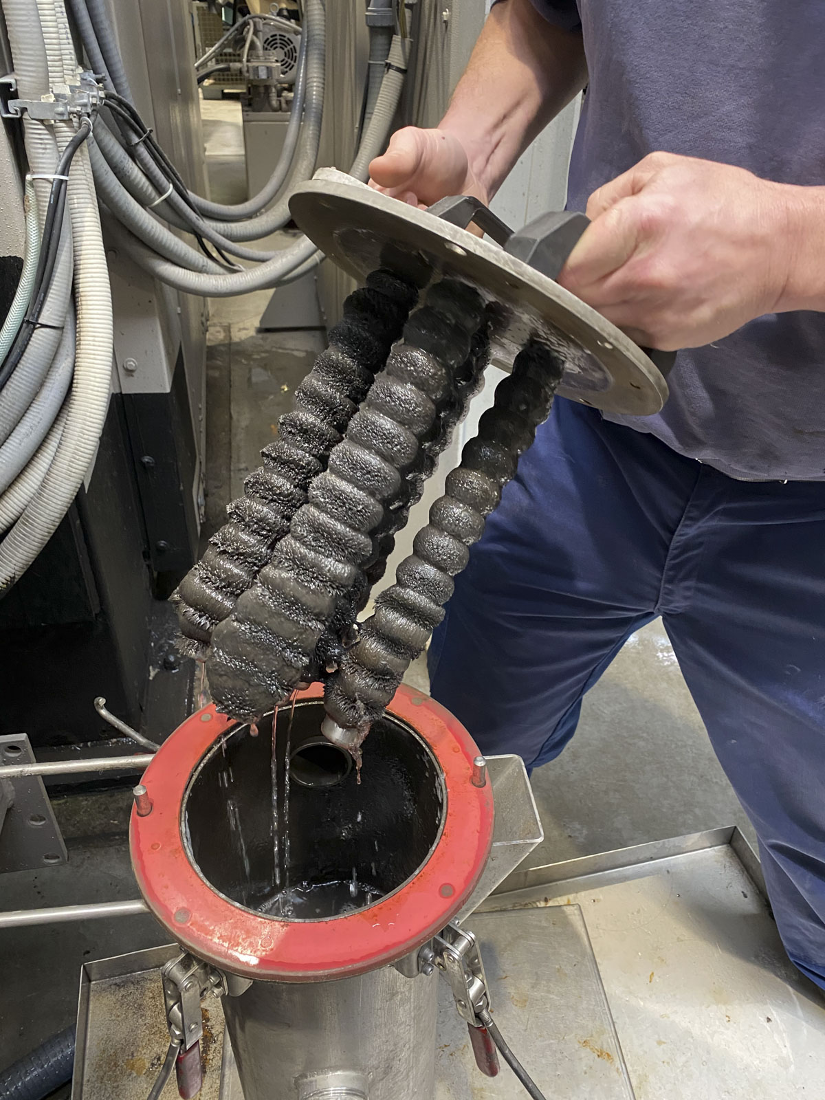 Doch Anfangs wurde von beiden Firmen die Komplexität und Eigenheiten einer Waschstraße, die ausschließlich Matten reinigt unterschätzt, und erste Versuche schlugen fehl. „Dass sich trotz regelmäßiger Reinigung jedes Mal wieder jede Menge an Feinschmutz in der Matte ansammelt war klar, aber dass sich immer wieder solche Mengen an Eisenfeinstaub in einer Matte ansammeln, war nicht vorstellbar“ so Gerhard Eder. „Es wäre doch gelacht, wenn zwei oberösterreichische Innovationsbetriebe zu keiner Lösung kommen“, blickt Gerhard Eder zurück. Umwelt und Nachhaltigkeit haben bei beiden Unternehmen einen hohen Stellenwert und so wurde im Jahr 2019 das Projekt neu aufgerollt und erste Tests gestartet. EDER vertraute hier auf ABZ und ermöglichte einen Testbetrieb mit mehreren Adaptions- und Optimierungsanläufen. Über 6 Monate begleitete EDER die Entwicklungsphase mit den hausinternen Betriebstechnikern. Dieser Prozess sollte sich am Ende bewähren, denn der installierte Microdrehfilter (MDF) erzielt seither sehr gute Ergebnisse.