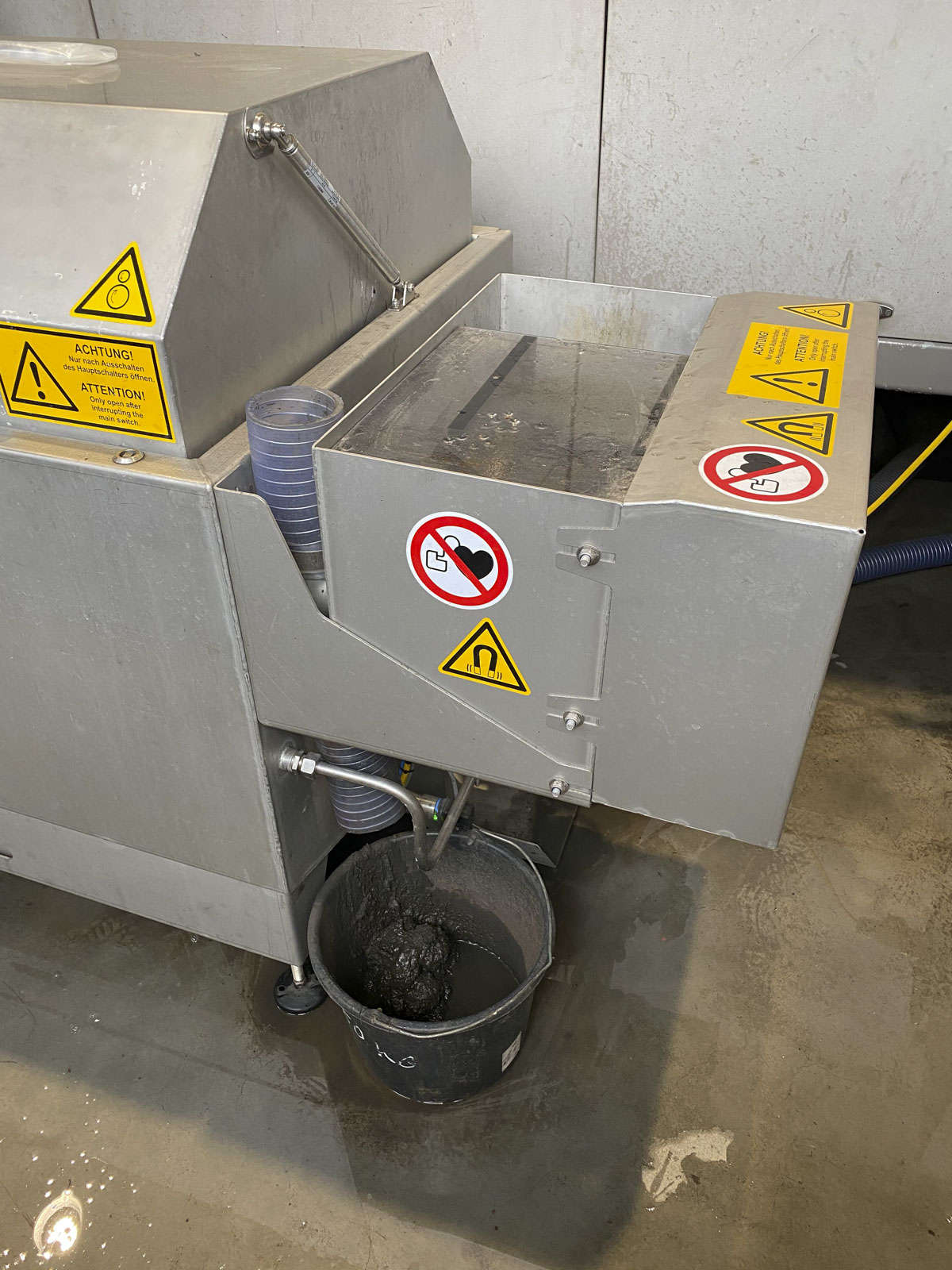 Neben einer Qualitätssteigerung des Waschergebnisses werden pro Woche durch den neuen Magnetabscheider ca. 5-10 Kg Eisen und ca. 150 kg Fasern und Haare aus dem Waschwasser gefiltert. Dieses Eisen und weitere Feststoffe mussten vorher durch sogenannte Komplexbildner in der Waschflotte gebunden werden, um ausgewaschen zu werden. Nun konnte der Einsatz von Waschchemie um 50% reduziert und enorme Mengen an Frischwasser eingespart werden. Der bei der Mattenwäsche anfallende nasse Schlamm wird nicht mehr in den Kanal abgeleitet, sondern getrocknet und komprimiert gesammelt. Dieser zu entsorgende Schlamm ist nun weitgehend frei von Eisen und das Volumen, der anfallenden Schlammmenge, konnte um gut ein Drittel reduziert werden.